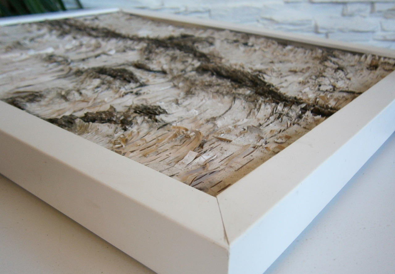 Wenn die Rinde in unserer Werkstatt ankommt, wird sie zunächst gründlich gewaschen und bei 80 Grad Celsius getrocknet und desinfiziert. Anschließend wird die Rinde trocken gelagert. Dadurch garantieren wir einen hygienischen Standard unserer Rindenbilder.